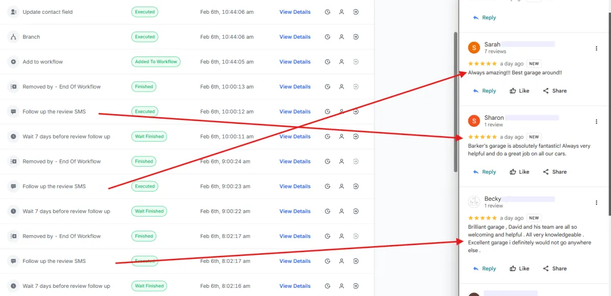 We automatically request customer reviews after each appointment, helping businesses build trust and credibility online. This has generated five new reviews in just two weeks, compared to one every two to three months previously, strengthening reputation and driving long-term revenue growth.